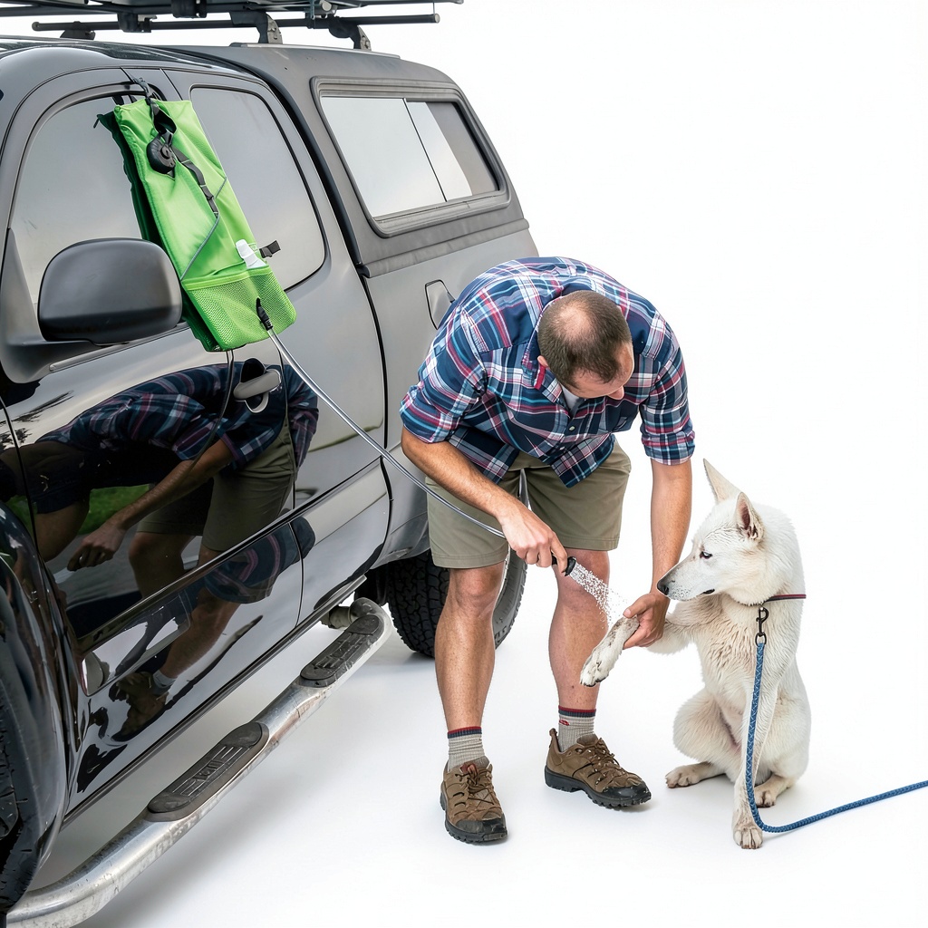 This portable dog shower is ideal for a variety of outdoor activities, including hiking, camping, and travel. It allows for convenient pet bathing on the go, ensuring your furry friend stays clean and comfortable during adventures. The adjustable strap enables secure attachment to tree branches, car door frames, interior grab lines, or tailgates, providing flexibility in any environment. Whether you’re at a campsite, park, or on a road trip, this product simplifies pet care and is suitable for dogs of all sizes, as well as occasional personal use when needed.